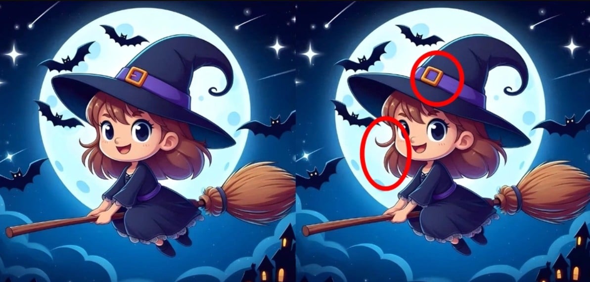 Dakle, jeste li spremni za sljedeći izazov? Pažljivo pogledajte dvije slike mlade vještice koja leti na metli. Na prvi pogled obje slike izgledaju identične. Ali zapravo postoje dvije razlike između njih, a vaš zadatak je pronaći ih u 11 sekundi. Isprobajte ovu zagonetku i provjerite koliko vam je oštar vid!