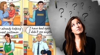 Sve što trebate učiniti je pogledati sliku ispod i odrediti koja je osoba u trgovini nekome ukrala novčanik. Troje ljudi na slici govore istinu, ali jedan od njih laže.