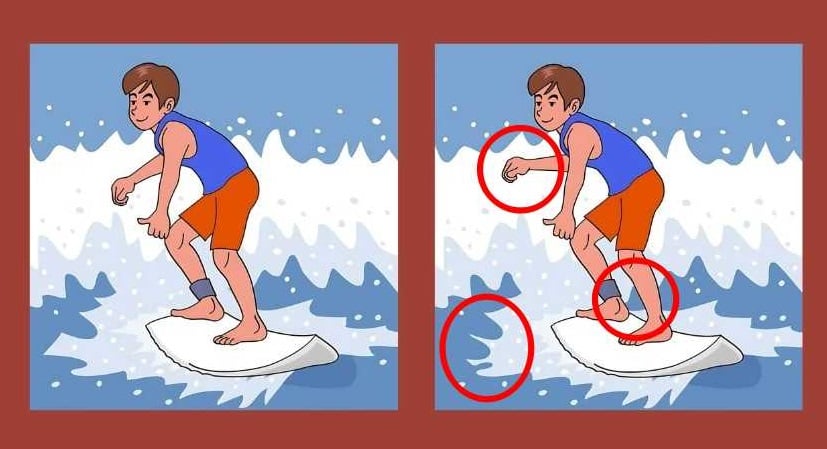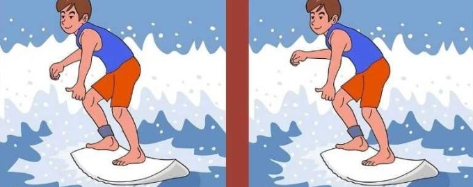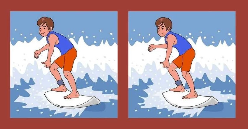 Na slici vidimo surfera kako osvaja valove na dasci. Na prvi pogled može vam se činiti da su dečki na obje slike isti, ali ako malo bolje pogledate, odmah će vam biti jasno da to nije tako – negdje postoji nekoliko razlika koje slike čine različitima.