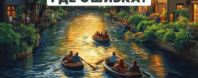 Evo slike koja prikazuje prekrasan večernji gradski krajolik. Između kuća teče rijeka po kojoj ljudi plove u čamcima. Na prvi pogled slika se čini normalnom, ali zapravo postoji ozbiljna greška.