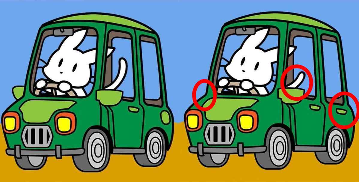 Uzmite savjet: na drugoj slici zečji rep je kraći nego na prvoj. Također na prvoj slici je retrovizor na autu, ali ne i na drugoj. Drugi zeleni automobil, desno, ima kvaku na vratima, ali prvi nema.