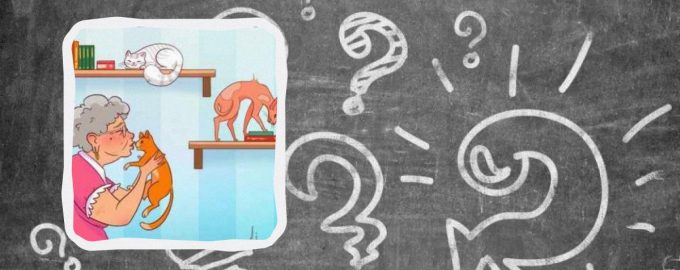 Na slici je umirovljenica okružena kućnim ljubimcima. Mačke i mačke različitih pasmina igraju se i opuštaju u sobi. Može se činiti da na slici nema ništa suvišno, ali to nije tako – umjetnik je ovdje sakrio nedosljednost.
