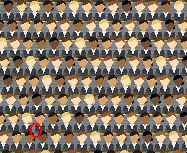 Na slici je mnogo sudaca. Svi imaju sudački čekić. Naš zadatak je pronaći suca koji nema čekić.