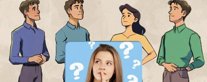 Jeste li spremni? Ispod ćete vidjeti crtež koji prikazuje ženu i tri muškarca. Treba ustanoviti čija je žena mlada dama u žutoj bluzi.