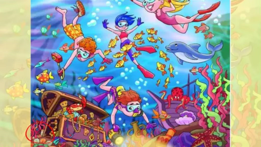 Na slici – dječaci i djevojčice rone na dno mora. Tu su hobotnice, meduze, morske zvijezde i drugi morski životi. Postoji čak i skriveno blago. Međutim, naš zadatak je pronaći cipelu koju je tip izgubio.