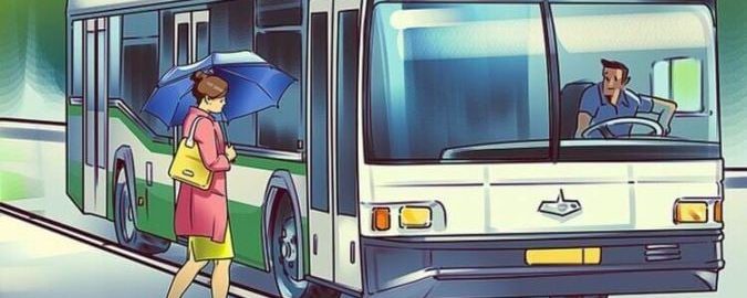 Na slici vidimo ženu kako ulazi u autobus. Vani pada kiša, pa ona u rukama drži kišobran kako bi se zaštitila od kiše.