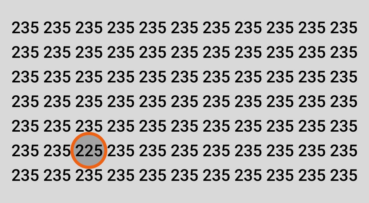 Sljedeća optička iluzija natjerat će vas na krajnju koncentraciju jer ćete na slici morati pronaći broj koji se razlikuje od svih ostalih. Na slici vidimo veliki broj brojeva 235. Negdje među njima skriven je broj koji se razlikuje samo za jednu znamenku.