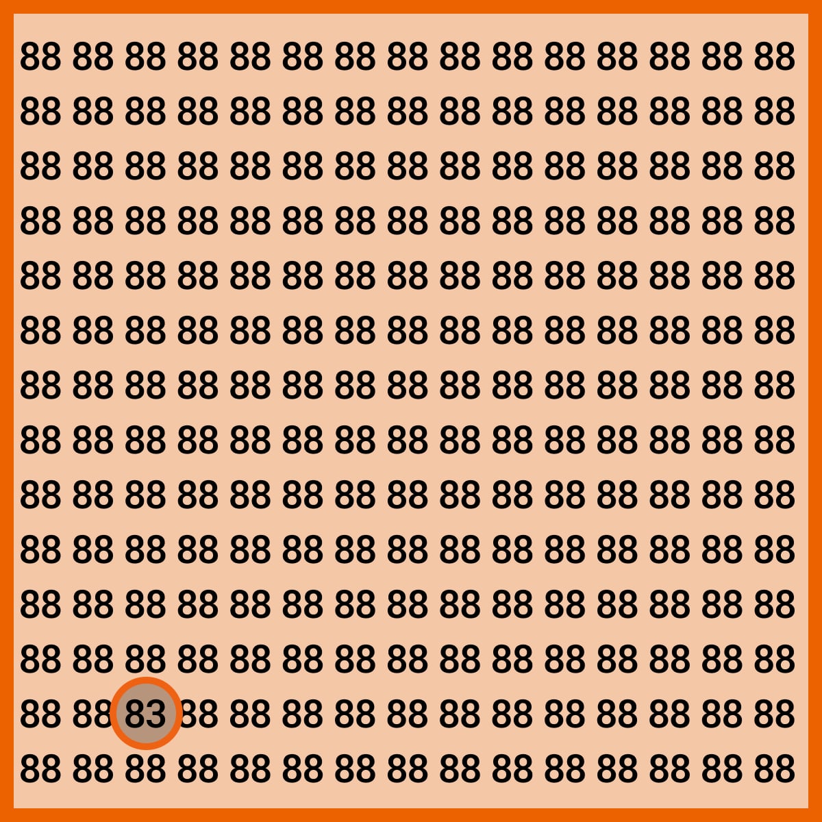 Zbog velikog broja istih brojeva 88 oči će vam jednostavno podivljati. To vas može izbaciti iz kolosijeka i učiniti da vam se čini da nema drugog broja. Ali nemojte vjerovati ovoj optičkoj iluziji – tamo negdje sigurno postoji broj 83. I morat ćete ga pronaći što je brže moguće.