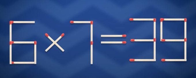 Pred vama je netočna jednadžba 6 x 7 = 39, koja se sastoji od 24 šibice. Morate pronaći dva dodatna podudaranja. Kad se odbace, jednakost postaje ispravna.
