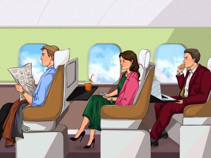Na slici vidimo troje ljudi kako sjede na svojim sjedalima u avionu – dva muškarca i jedna žena. Na prvi pogled nitko od njih ne djeluje sumnjivo. Morat ćete dobro razmisliti kako biste otkrili tko je od njih varalica.