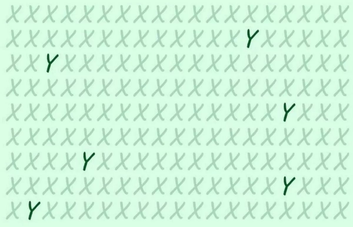 Ovaj problem sastoji se od 9 redaka i 31 stupca, većinom ispunjenih slovom X. Vaš zadatak je pronaći šest skrivenih Y-ova. Da bi problem bio teži, imate samo 13 sekundi da pronađete odgovor.