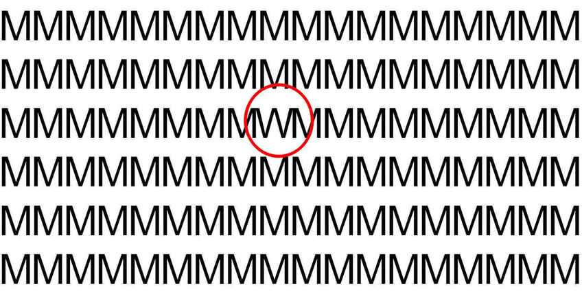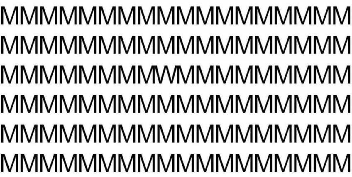 Riješite fascinantnu optičku iluziju – među slovima M, kojih je mnogo na slici, morate brzo pronaći W, skriveno od vašeg pogleda.
